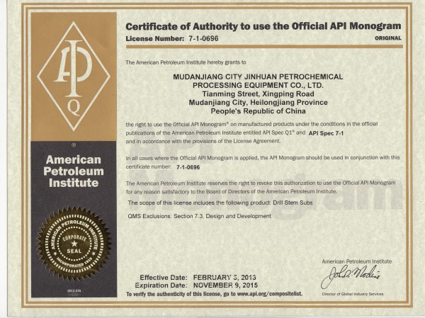 美國(guó)石油學(xué)會(huì)證書(shū)(API)