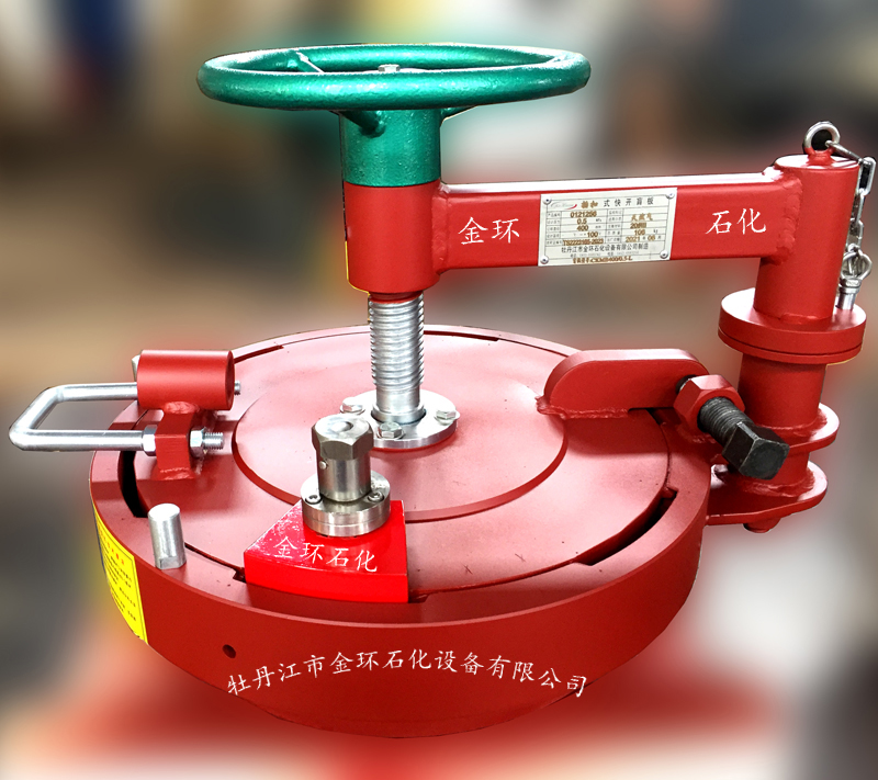 快開(kāi)盲板是用于壓力管道或壓力容器的圓形開(kāi)口上的一種機(jī)械裝置。一般由筒體法蘭、頭蓋、勾圈或卡箍、密封圈、安全聯(lián)鎖機(jī)構(gòu)、開(kāi)閉機(jī)構(gòu)、轉(zhuǎn)臂及短節(jié)(需要時(shí))等部件構(gòu)成。